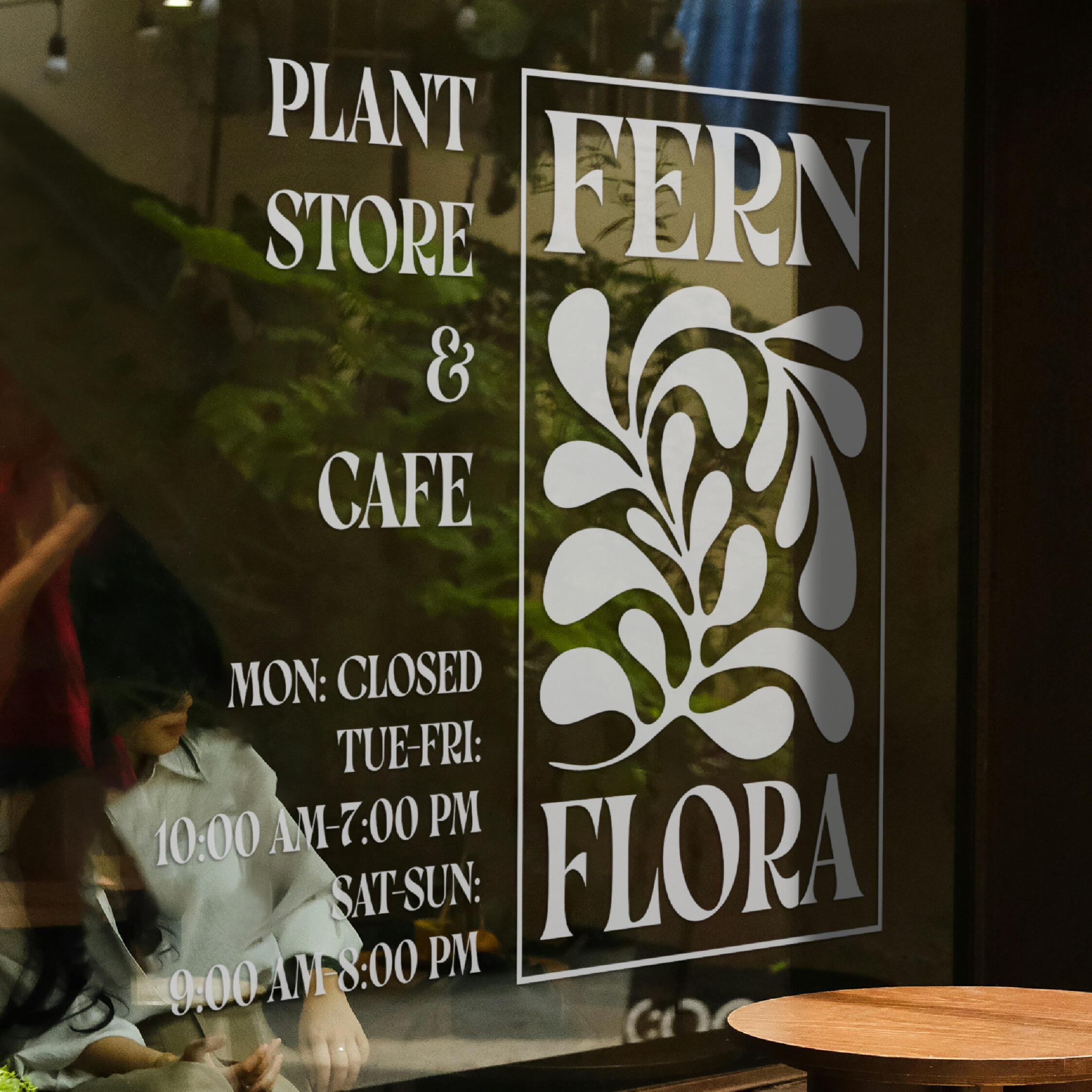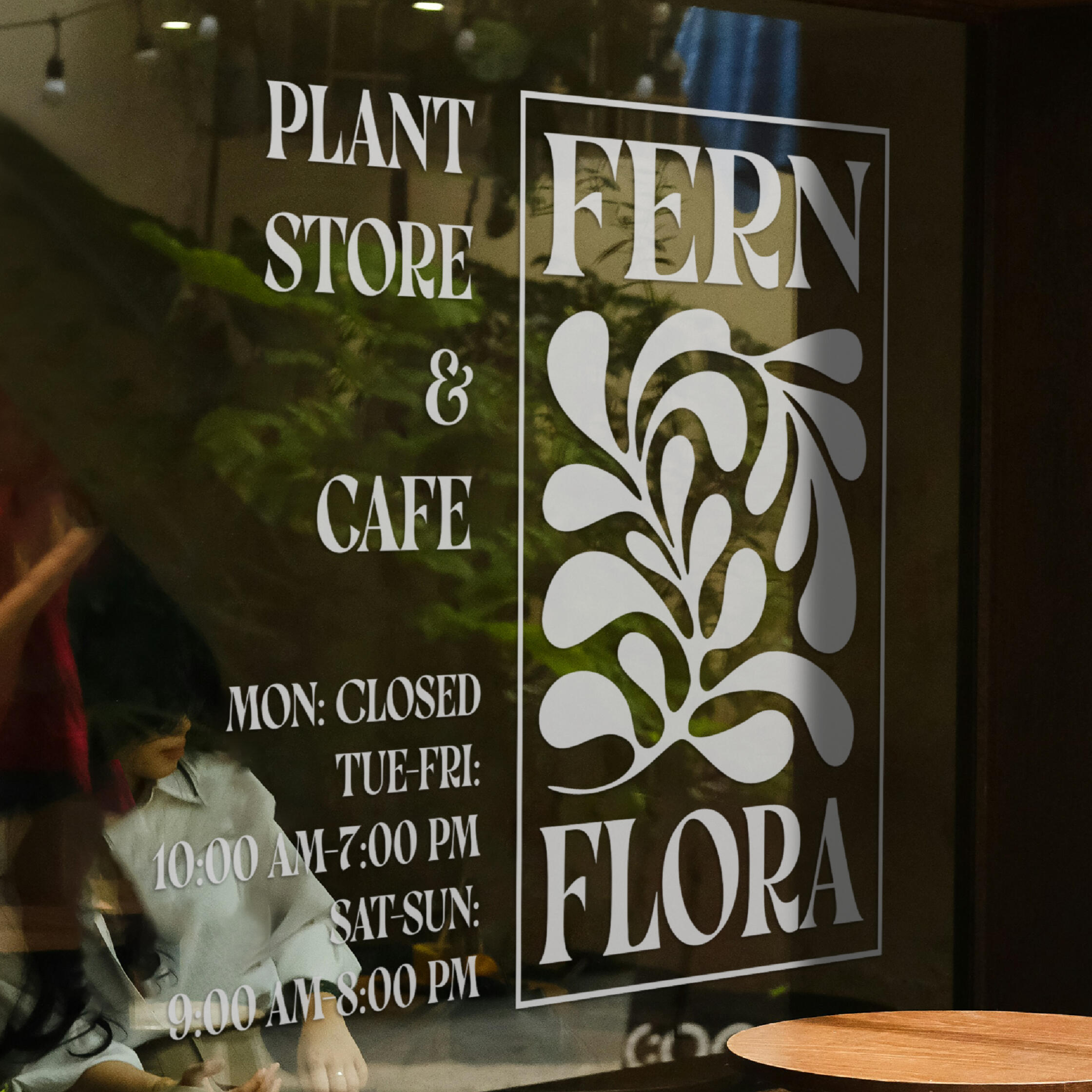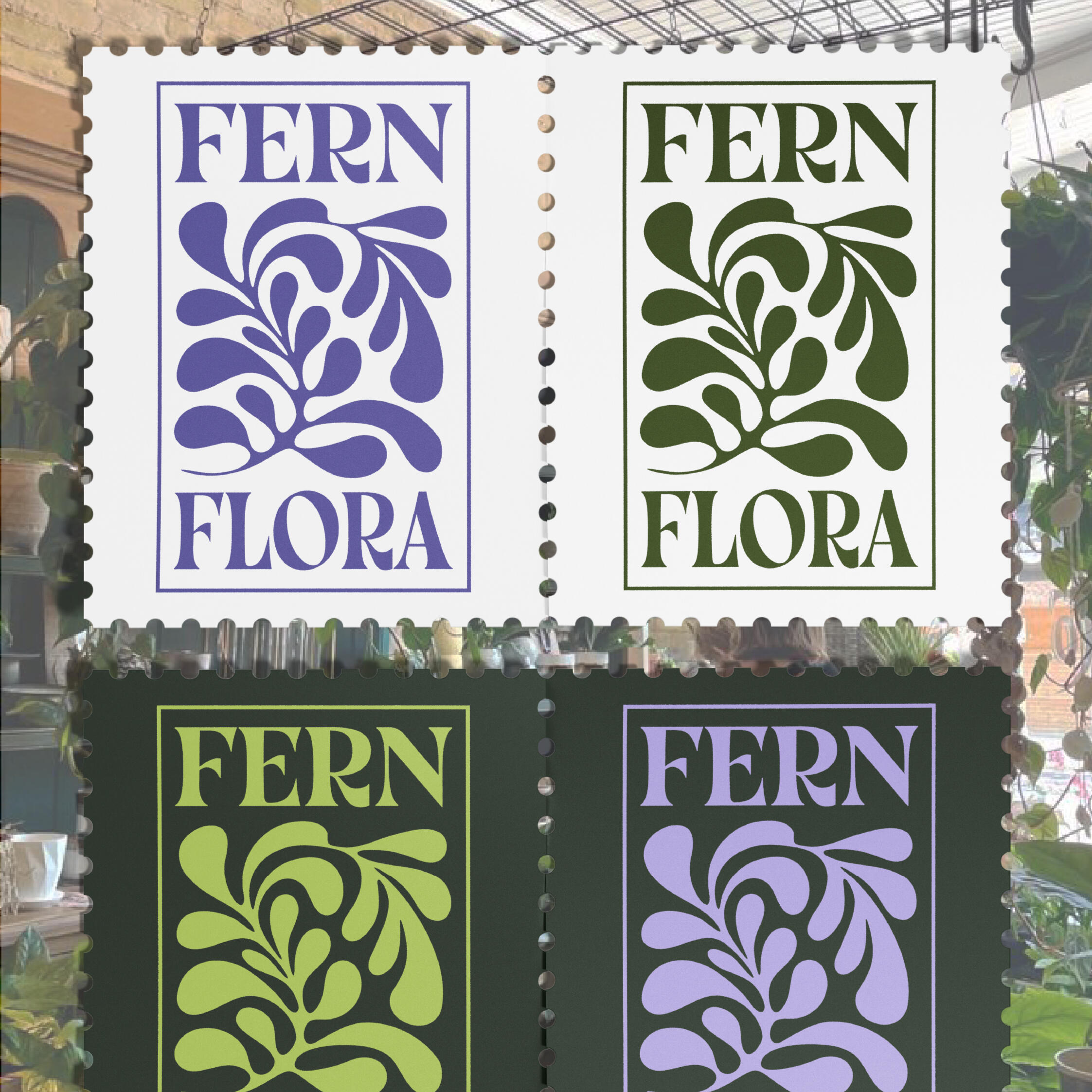 Résultat - La version finale est à la fois haut de gamme et accueillante. J'ai choisi une gamme de couleurs douces et complémentaires. Comme il s'agit d'un projet destiné à être publié sur Instagram, j'ai réalisé une multitude de mockups afin de montrer comment le logo peut vivre dans un environnement : il fallait en mettre plein les yeux. Je serais sûrement entré chez Fern & Flora si j'étais passé devant !