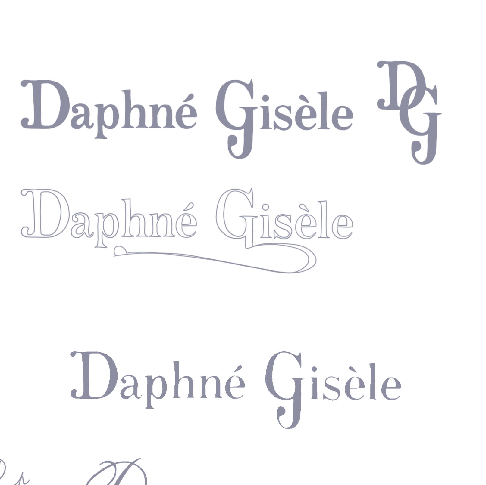 Axes non retenus - Deux axes proposés : l'utilisation de deux typographies sur l'un, reflétant les deux personnes derrière la marque (Daphné, et sa grand-mère qui est aussi sa muse, Gisèle). Le second intègre un léopard, dont le motif est présent sur les doublures de tous les vêtements de Daphné.