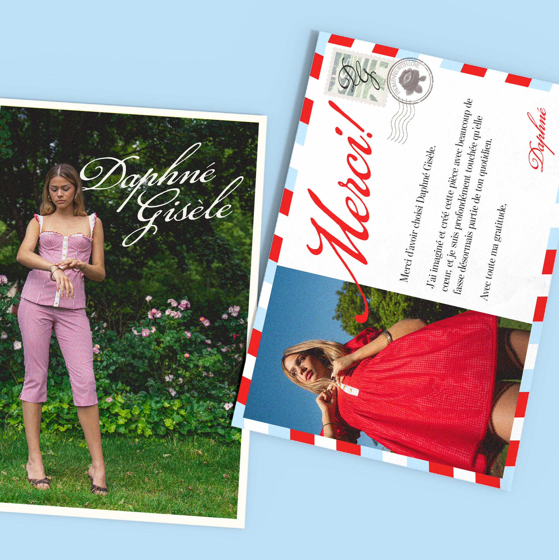 Daphné est une créatrice de mode qui lance sa marque, Daphné Gisèle, fin 2025.