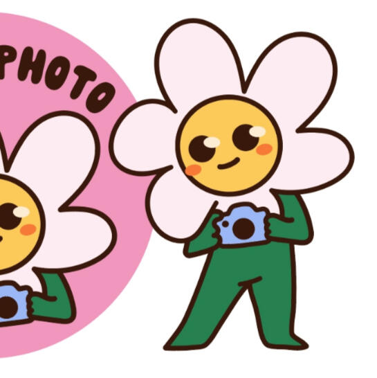 Résultat - La mascotte rose a conquis Mathilde, à qui le motif de la fleur tenait vraiment à cœur. J'ai donc commencé la vectorisation de cette mascotte à l'air très amicale (je l'aime beaucoup). Nous nous sommes aussi mis d'accord sur une typographie, une palette de couleurs et diverses manière de les agencer avec la mascotte afin d'avoir un logo exploitable. Au final, deux versions seront retenues.